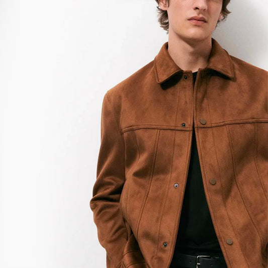 Noble Wear Oxford Lapel Faux Suede Jacket
